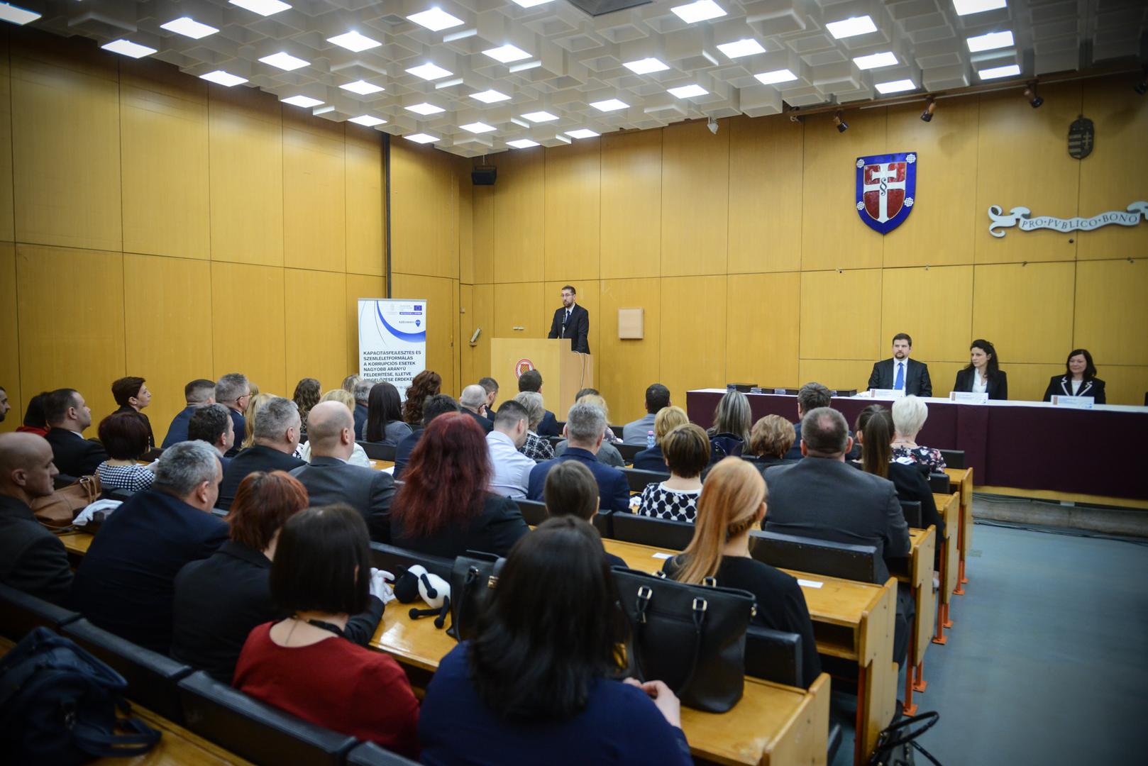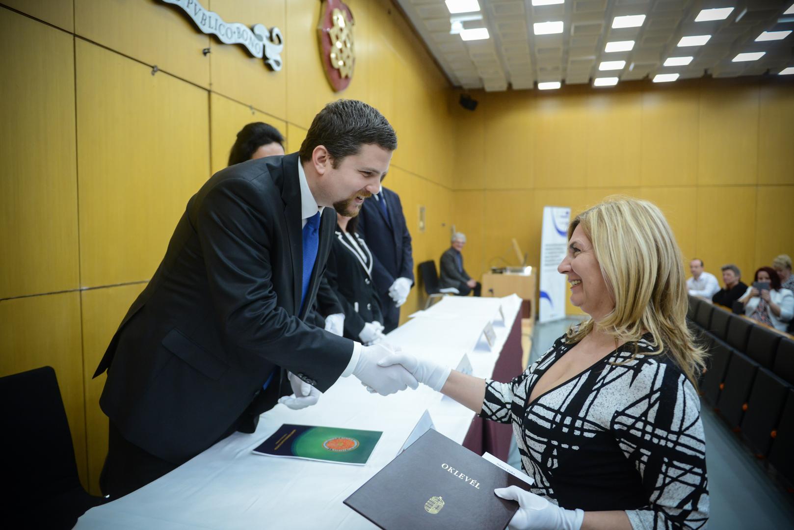Az ünnepélyes oklevélátadón Téglási András elmondta, hogy minden diploma megszerzése kiváltság és mérföldkő is az ember életében, melyet érdemes megünnepelni. „Ha visszatekintenek az elmúlt időszakra, gondoljanak arra, milyen tudással gazdagodtak és milyen szakmai és baráti kapcsolataik alakultak ki”- jegyezte meg az Államtudományi és Közigazgatási Kar oktatási dékánhelyettese. Az NKE képzésein az elmúlt években összesen mintegy négyszázan szereztek integritás tanácsadói végzettséget, amellyel Téglási András szerint speciális és használható tudást szereztek a végzettek. Klotz Péter, a képzés szakfelelőse elmondta, hogy a korábbi képzésekhez képest sokkal több interakcióban és személyes élményben lehetett részük a hallgatóknak és az oktatóknak is. „Nyitott volt az évfolyam az új oktatói kezdeményezésekre”- állapította meg a KÖFOP-2.2.3. projekt szakmai vezető helyettese. A szakember szólt arról is, hogy a végzettek közül sokan a rendvédelemben és a honvédelemben dolgoznak. „Különösen ezeknél a hivatásrendeknél fontos ez a fajta nyitottság, a változtatásra való igény”- hívta fel rá a figyelmet. A „Kapacitásfejlesztés és szemléletformálás a korrupciós esetek nagyobb arányú felderítése, illetve megelőzése érdekében” elnevezésű projekt keretében tartott képzés során nemcsak felvázoltak egy „szép új világot”, hanem meg is mutatták a résztvevőknek, hogyan tudják kis lépésekkel jobbá tenni azokat a szervezeteket, ahol dolgoznak. „Akkor jártunk el helyesen, ha a jobbítás iránti vágyat sikerült felkeltenünk Önökben”- fogalmazott Klotz Péter. Ma Magyarországon a legtöbb szervezetnek azért kell változnia, mert a világ is gyorsan változik. „Az integritás tanácsadóknak ezen változások felismerésében, kezelésében és irányításában van meghatározó szerepe”- emelte ki. Az oklevelek átadásában közreműködött Belányi Márta, a Magyar Kormánytisztviselői és Állami Tisztviselői Kar főtitkára és Szabóné Gál Marianna, a Nemzeti Védelmi Szolgálat főosztályvezető-helyettese is.