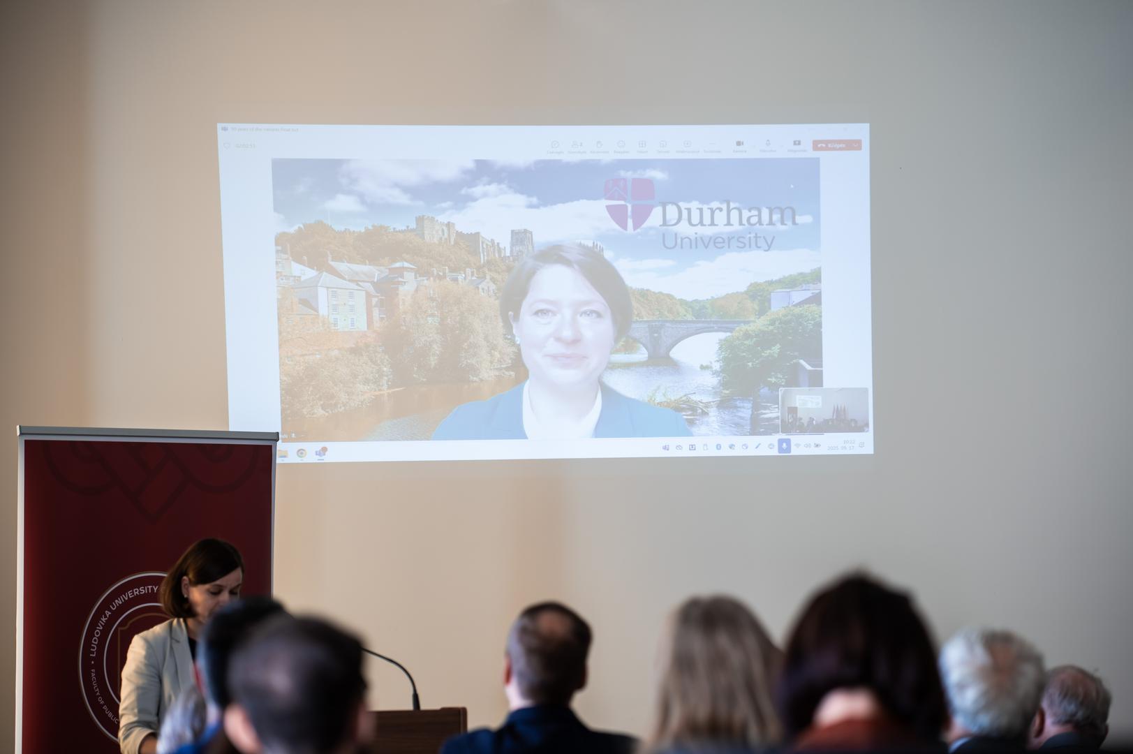 Sulyok Katalin, a Durham Egyetem docense online csatlakozott az eseményhez. Az előadása a jövő generációk iránti felelősség kérdését, annak fejlődését vizsgálta, főként a környezetvédelem és a klímavédelem összefüggésében. Kiemelte, hogy a jövő generációk iránti felelősség jogi koncepciója először a 1972-es Stockholmi Nyilatkozatban, majd a 1975-ös Helsinki Záróokmány környezetvédelmi szakaszában is megjelent. Hozzátette, hogy a bírósági gyakorlatban, különösen emberi jogi ügyekben, a jövő generációk védelme egyre hangsúlyosabb: például Németországban az alkotmánybíróság kimondta, hogy az alapjogok sérülhetnek a jövőben, ha nem csökkentik a kibocsátásokat, így az állam köteles védeni a jövő generációkat.