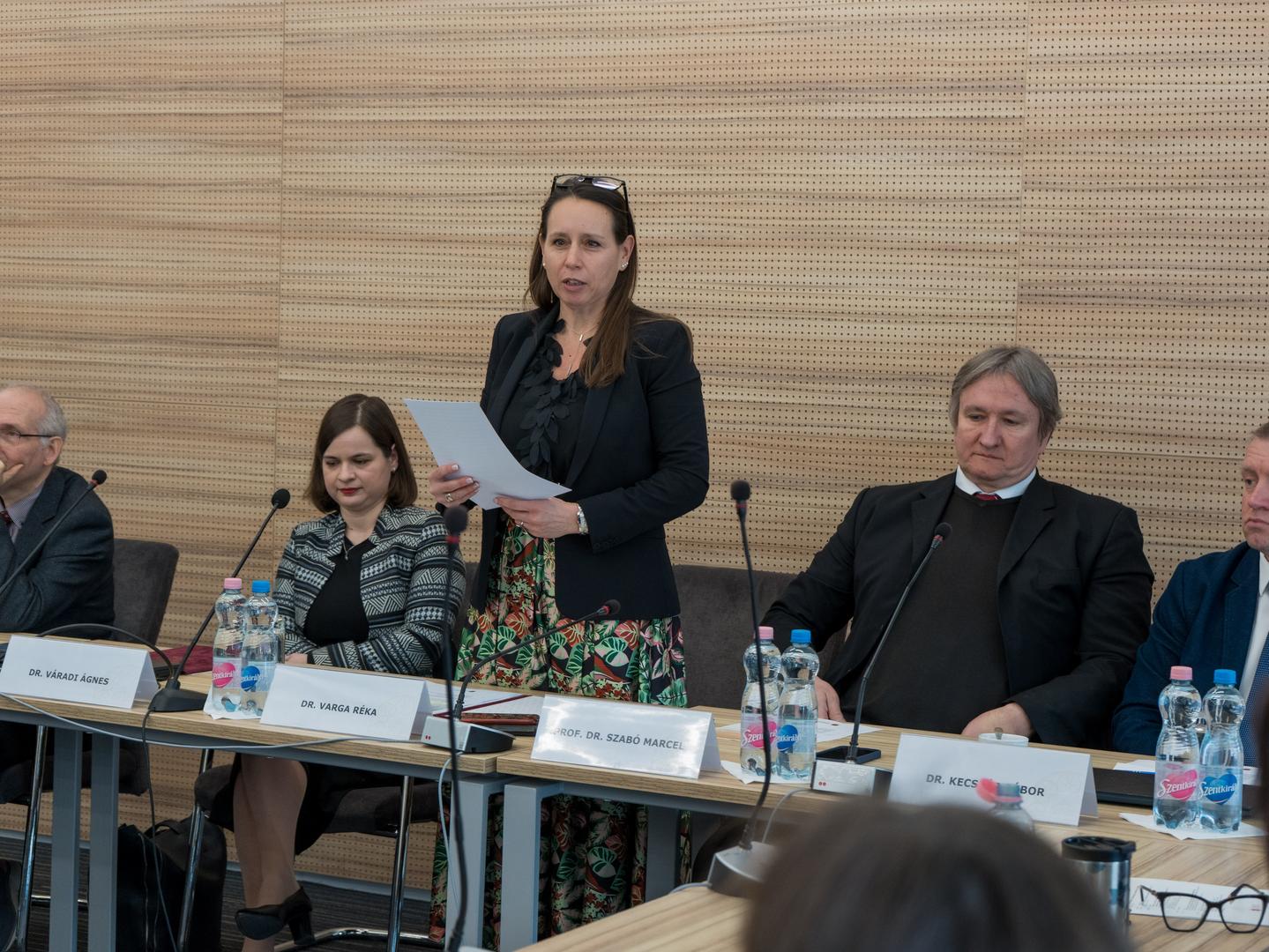 „Nem telhet el egyetlen nap anélkül, hogy ne lenne hatásod a körülötted lévő világra. Amit teszel, az számít, és neked kell eldöntened, milyen változást akarsz elérni” – idézte Jane Goodall gondolatát megnyitójában Varga Réka, az NKE ÁNTK dékánja. Hangsúlyozta, az ÁNTK kiemelt célja, hogy közszolgálati elkötelezettségét megjelenítse, elősegítse a kritikai gondolkodást, valamint biztosítsa a párbeszédet az akadémiai világ, a civil szféra és a kormányzati szektor között. Varga Réka arról is szólt, hogy az új klímatörvény, valamint a klímaváltozás összefüggése a versenyképességgel, az energiaválsággal és a geopolitikai változásokkal olyan dilemmákat hoztak, melyek e párbeszédet természetszerűleg hozzák e karra.