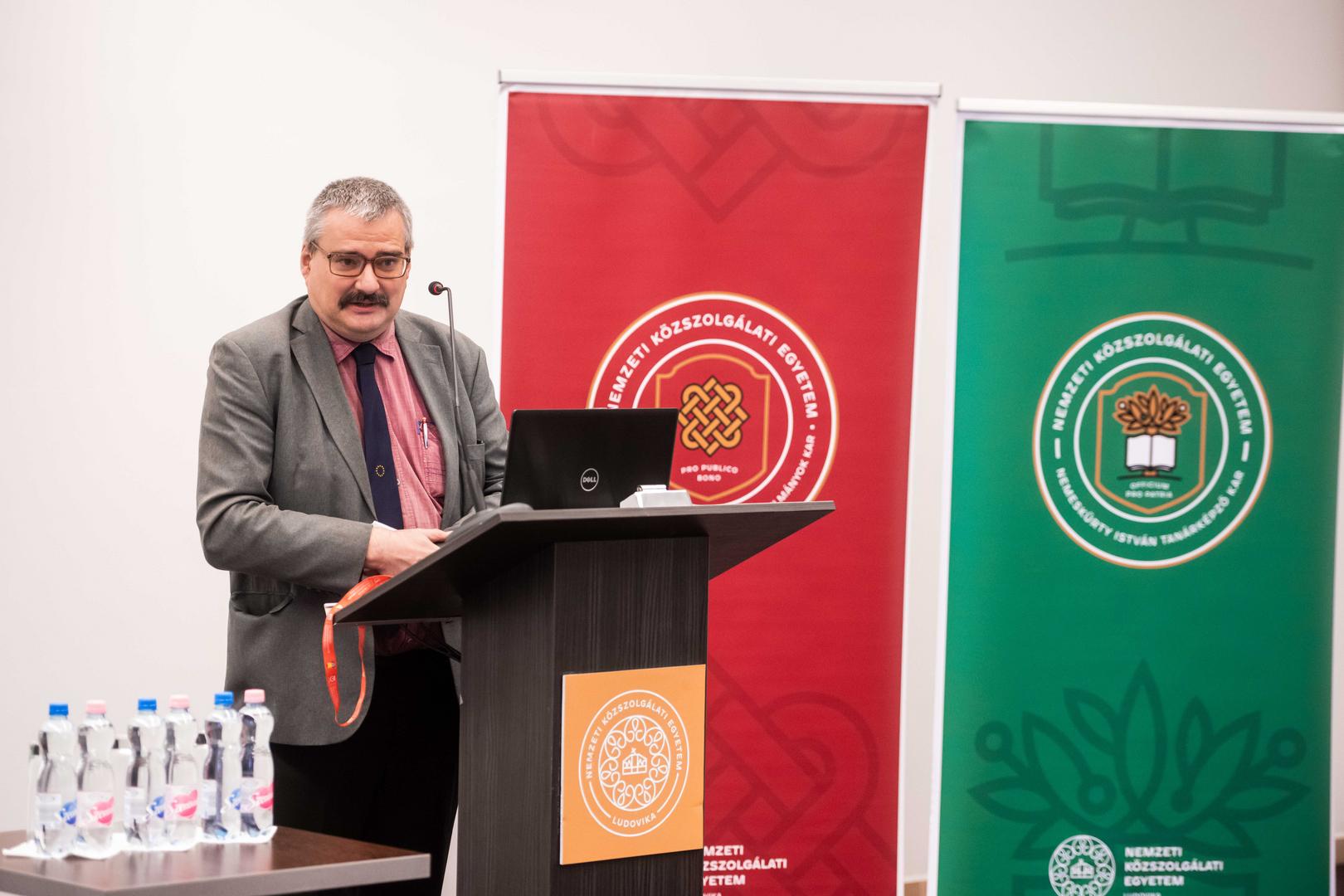 Balla János, a Váci Piarista Gimnázium tanára és az NKE Eötvös József Kutatóközpont (EJKK) képviseletében szólalt fel. Előadása történeti forrásokra, elsősorban iskolai értesítőkre épült, amelyek az intézményeket „három világ határán” elhelyezkedő térként írta le: az egyház – állam – nemzet metszéspontjában. Kiemelte, hogy a 19. század végi iskolai ünneprend egyszerre közvetített vallási, dinasztikus és nemzeti lojalitást. Az ünnepek között szerepeltek uralkodói évfordulók (Ferenc József, Erzsébet királyné), egyházi alkalmak és fokozatosan erősödő nemzeti emléknapok (március 15.). A lojalitás gyakran szimbolikus kettősségben jelent meg. Emlékeztetett: „Egyszerre lehetett tisztelni Ferenc Józsefet és ápolni a magyar nemzeti hagyományt.” Szerinte ez a pedagógiai dichotómia végigkíséri a korszakot.
