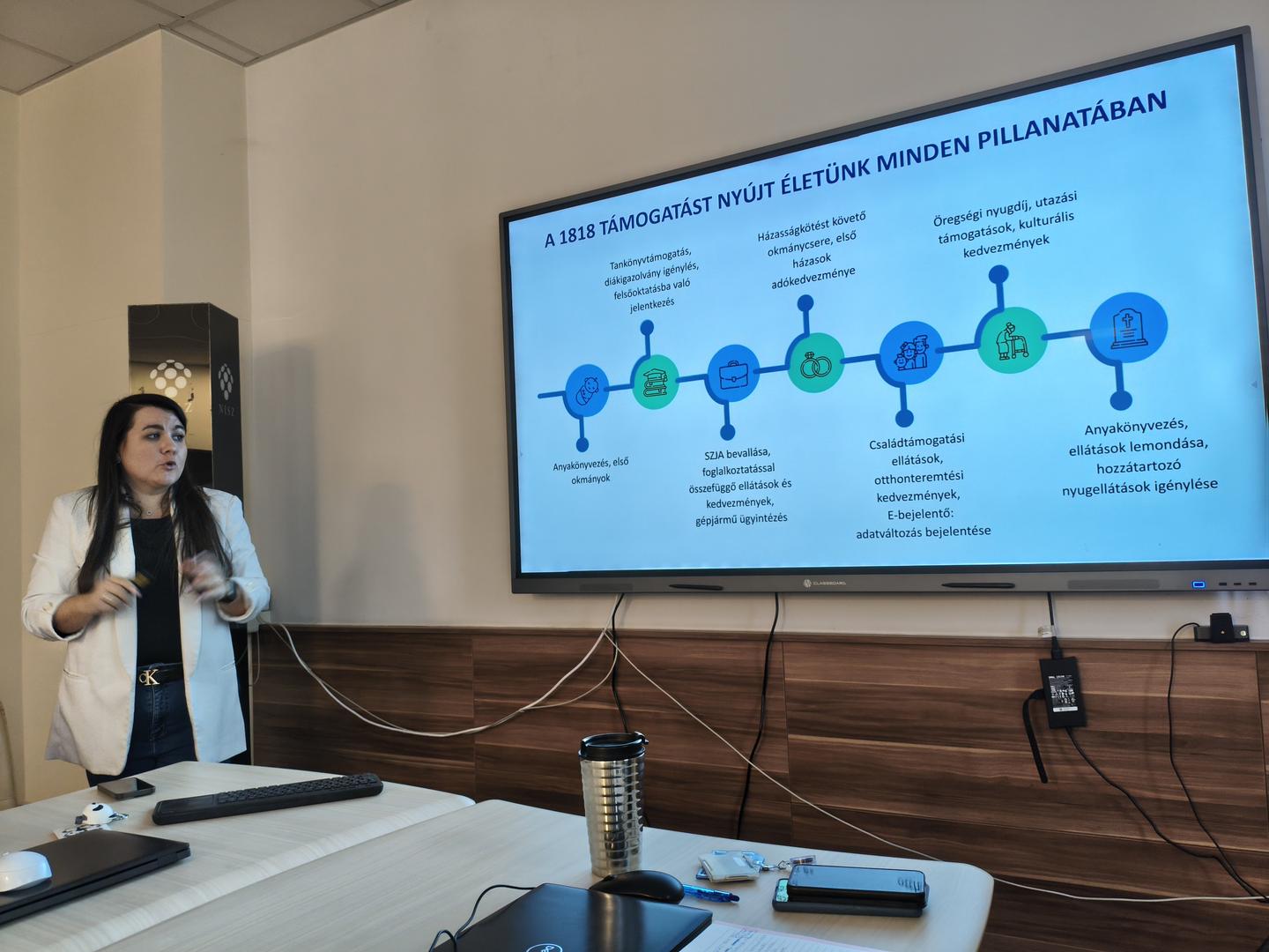 Glita-Hegedűs Ildikó és Varga Orsolya előadásai bemutatták, mivel foglalkozik pontosan a NISZ Zrt., mi a helye és szerepe a magyar infokommunikációs szektorban, melyek a jövőbeli céljai, a 1818 kormányzati ügyfélvonal milyen sokrétű támogatást nyújt az állampolgárok életének fontos pillanataiban. Bonyhádi Regina csoportkoordinátor áttekintette a mesterséges intelligencia alapú szolgáltatásokat a gyakorlatban bemutatva a MIA chatrobot működésének ügyintézői oldalát is. A hallgatók téma iránti érdeklődését jelezte, hogy számos kérdést tettek fel az előadóknak, akik mindegyikre készségesen válaszoltak. A látogatók ezt követően élőben is belehallgathattak néhány éppen beérkező ügyfélhívásba. A látogatás végén pedig egy érdekes bemutatót láthattak a DÁP alkalmazás videós azonosítási lehetőségeiről.