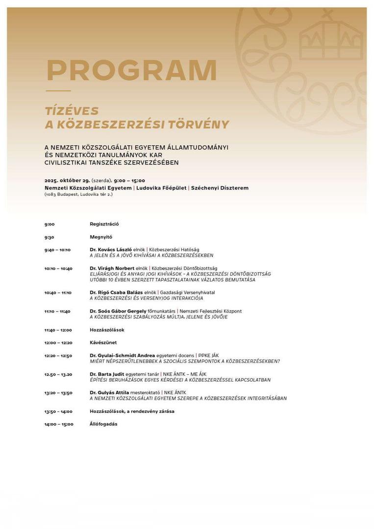 A rendezvény helyszíne: : NKE Államtudományi és Közigazgatási Kar, 1118 Budapest, Ménesi út 5., Dékáni tanácsterem