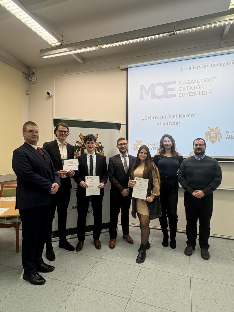 2026. február 13-án a Debreceni Egyetemen került megrendezésre az idei Polgári Anyagi Jogi, Eljárásjogi Jogesetmegoldó és Activity Verseny. Az anyagi jogi jogesetmegoldó versenyen Hegedüs Zoltán és Zöldesi Illés képviselték Karunkat, akik felkészítésében a Civilisztikai Tanszék valamennyi oktatója részt vett. Zöldesi Illés alperesi kategóriában II. helyezést ért el. Az Activity versenyen Forgács Fanni, Gaál Nikolett és Farkas Roland hallgatóinkból álló csapat vett részt.